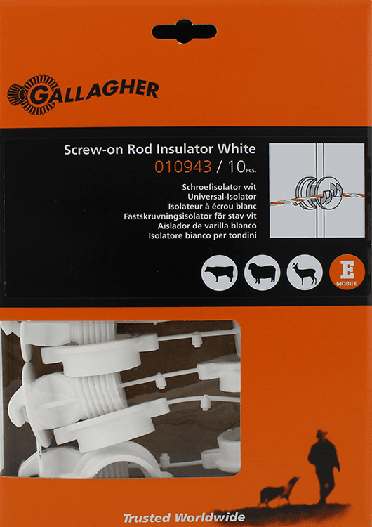 10 x Gallagher Screw-on Rod Insulator White 6/16mm additional 110 x Gallagher Screw-on Rod Insulator White 6/16mm additional 210 x Gallagher Screw-on Rod Insulator White 6/16mm additional 310 x Gallagher Screw-on Rod Insulator White 6/16mm additional 410 x Gallagher Screw-on Rod Insulator White 6/16mm additional 510 x Gallagher Screw-on Rod Insulator White 6/16mm additional 610 x Gallagher Screw-on Rod Insulator White 6/16mm additional 7