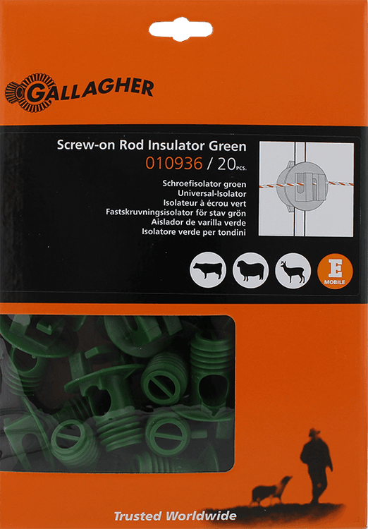 20 x Gallagher Screw-on Rod Insulator in Green 6/14mm additional 120 x Gallagher Screw-on Rod Insulator in Green 6/14mm additional 220 x Gallagher Screw-on Rod Insulator in Green 6/14mm additional 320 x Gallagher Screw-on Rod Insulator in Green 6/14mm additional 4