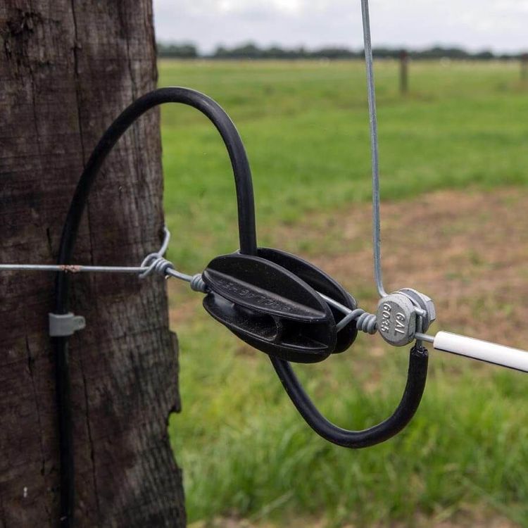 The Gallagher Strain Insulator is fitted onto the first and last post in order to tension wires and keep your fence tight.  The insulator is made from super-strong polycarbonate, which will guarantee a long lifespan.