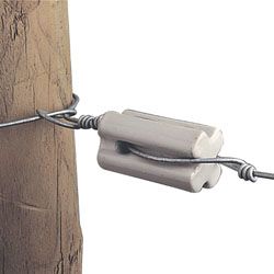 A Gallagher Porcelain Strain Insulator is designed for fitting wire to wooden posts, tensioning them in order to keep them tight.