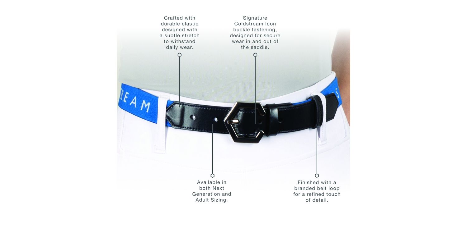 The must have addition you need in your competition wardrobe. This versatile, slim width belt is ideal for pairing with breeches in the competition arena or whilst training. The hardwearing elastic is unmistakably Coldstream branded and provides a subtle stretch, making it comfortable during exercise whilst offering a sleek style. The belt is finished with a Coldstream icon buckle fastening and branded belt loop.