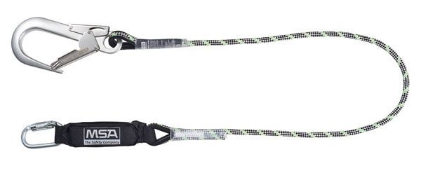 The MSA lanyards are available in web and kernmantel rope configurations with a variety of connectors. Energy-absorbing lanyards provide a means of connection between the fall arrest attachment of MSA full body harnesses and a qualified anchorage point. The energy absorber keeps fall arrest forces below 6 kN.