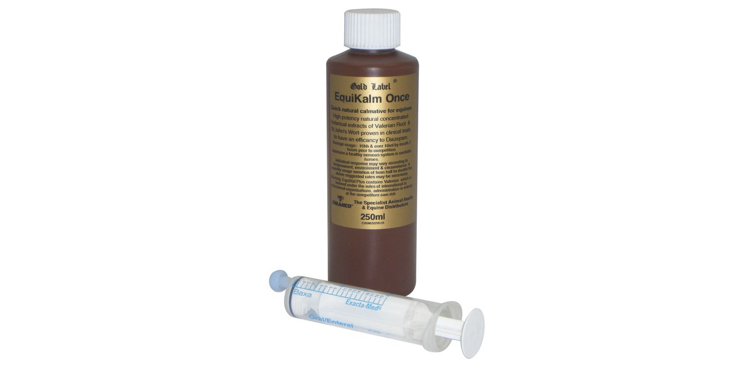 Gold Label EquiKalm Once has been designed to calm excitable horses within two hours, lasting for up to four hours. This is a potent formula that is suitable for short term use and is not permitted under international or UK competition rules.