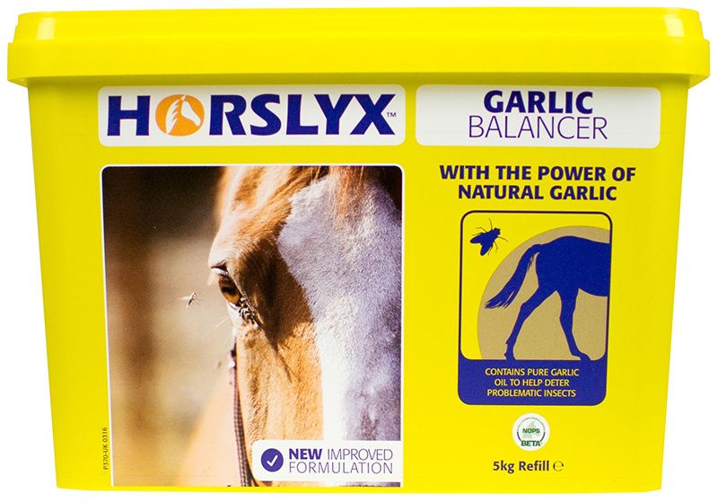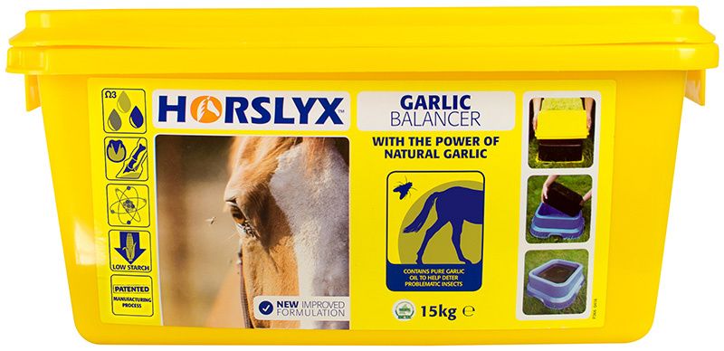 Horslyx Garlic Balancer contains pure garlic oil to help provide a natural and effective way to help combat the problem of biting insects.