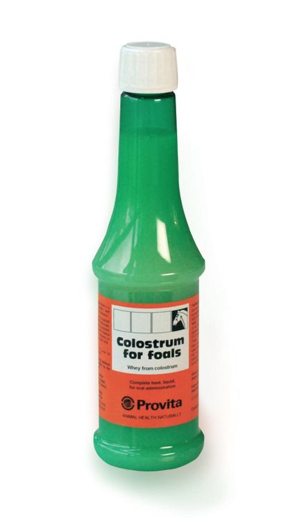 Provita Colostrum for Foals is a palatable liquid colostrum feed for newborn foals containing concentrated natural colostrum with a unique feeding bottle. This instant first feed for foals supplies high levels of natural colostrum and is designed to be used in cases where foals are deficient in colostrum or a colostrum feed is required.
