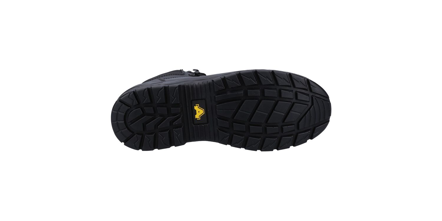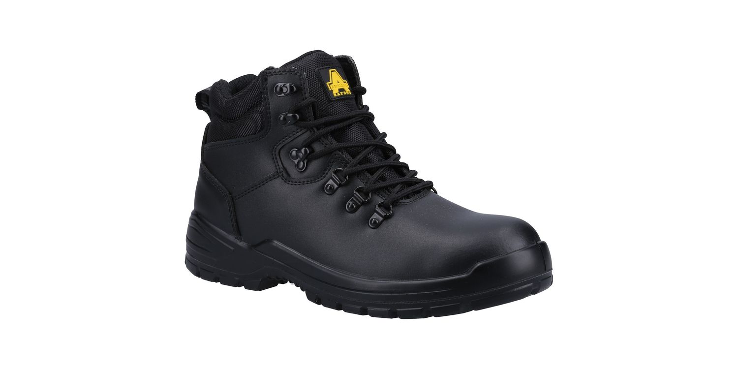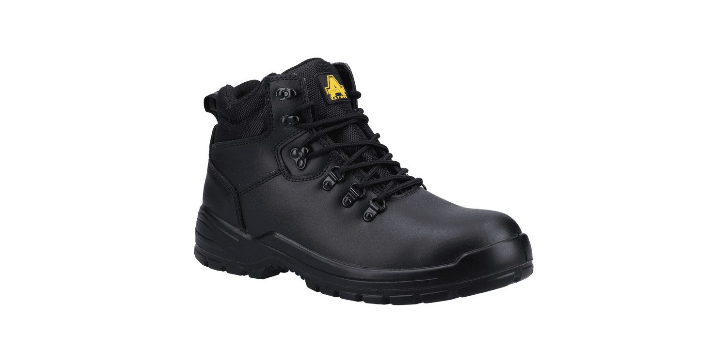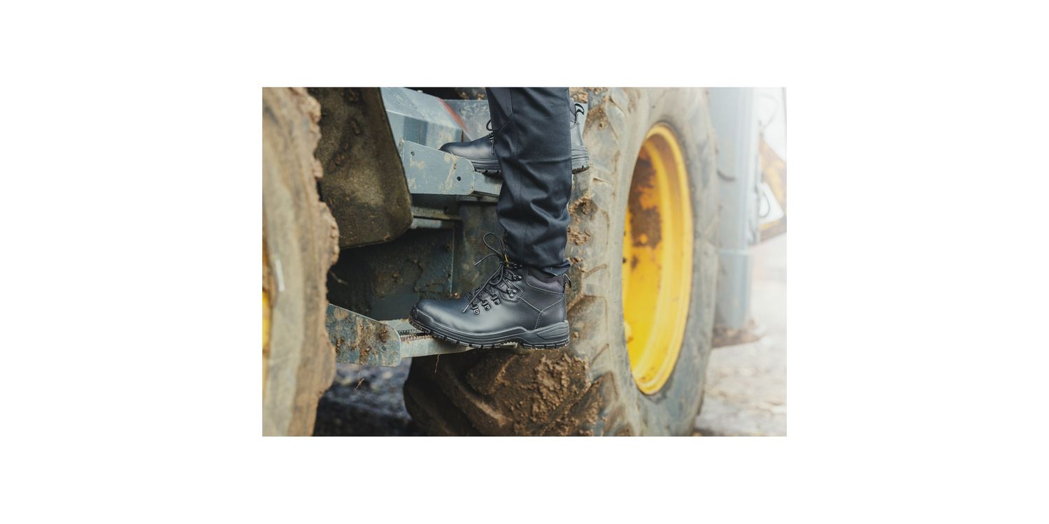 Lightweight and classic safety boot with water-resistant leather upper, padded collar, steel toe, steel midsole and dual density PU outsole.