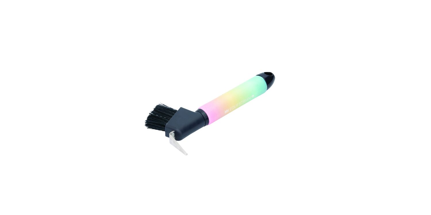Made with stiff quality PP bristles and strong stainless steel metal, this hoof pick is perfect for removing dirt from hooves. Detailed with Hy Equestrian branding and a soft faux ombre leather handle.