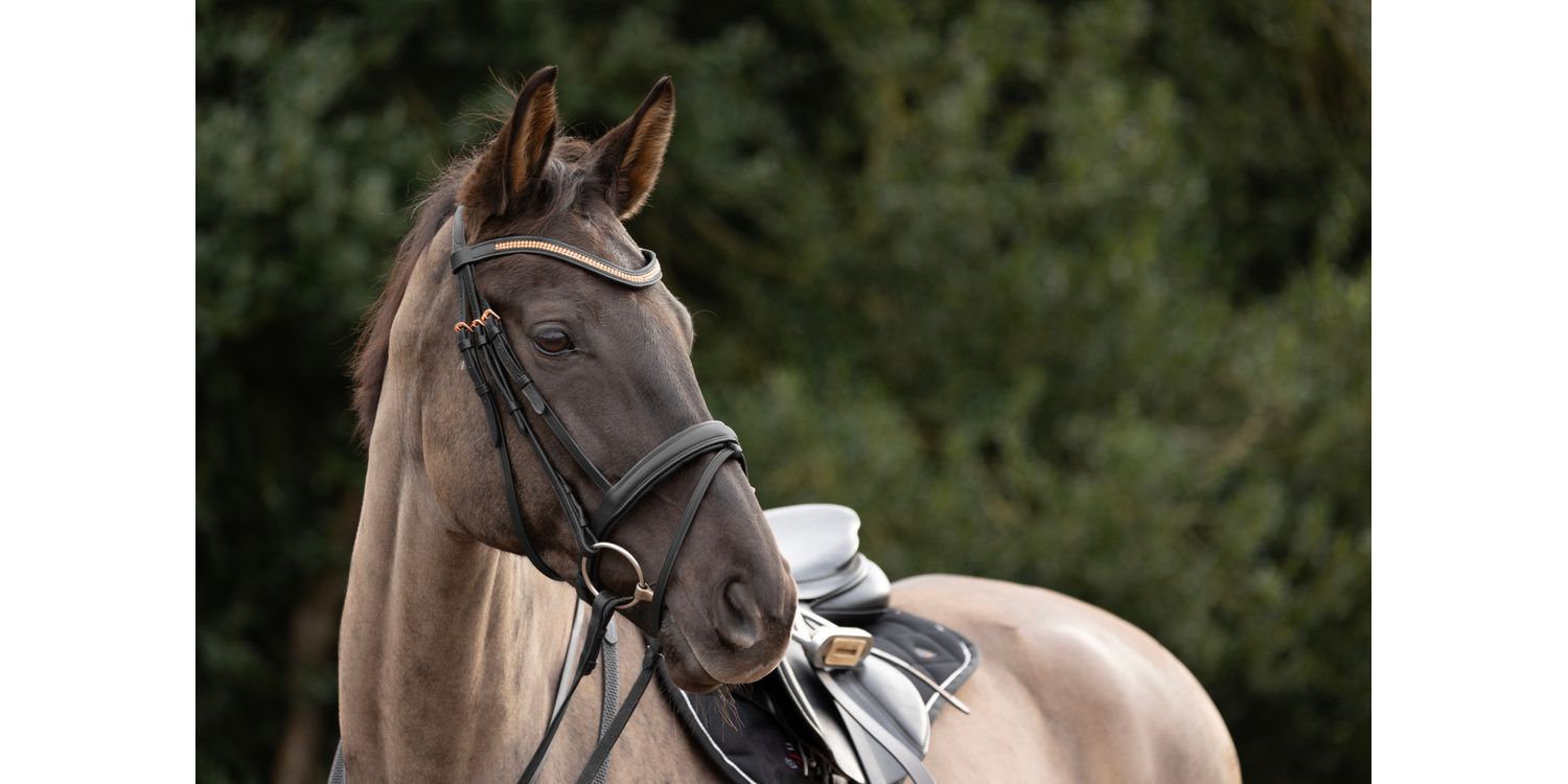 Add a bit of bling to your horse's tack with this stunning martingale! The black leather is complimented with exquisite rose gold diamantes and hardware to make it extra special. This fully adjustable martingale discourages the horse from raising their head beyond the point that the bit works correctly in the horse’s mouth and stabilises the reins.