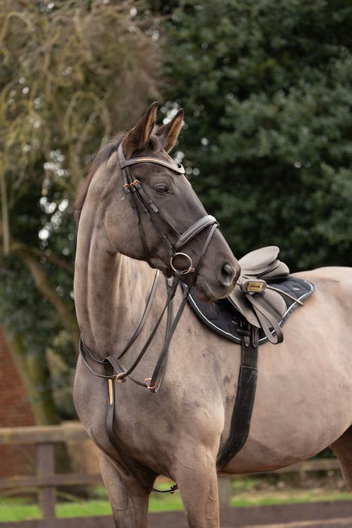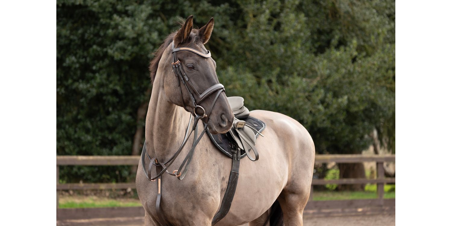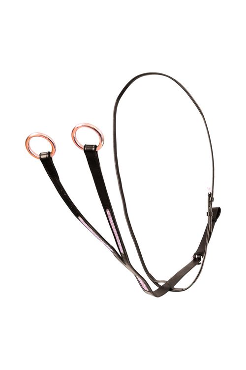 Add a bit of bling to your horse's tack with this stunning martingale! The black leather is complimented with exquisite rose gold diamantes and hardware to make it extra special. This fully adjustable martingale discourages the horse from raising their head beyond the point that the bit works correctly in the horse’s mouth and stabilises the reins.