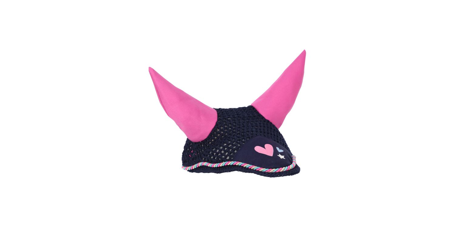 The Little Rider fly veil featuring the ‘I Love My Pony’ design is a stylish edition to your ponies wardrobe! Made with a quality close knit crochet, featuring polyester ears that provide a comfortable and secure fit, whilst being breathable at the same time. A three tone cord binding and Little Rider logo completes the look. Pair this with the matching saddle pad for a fun and fabulous look.