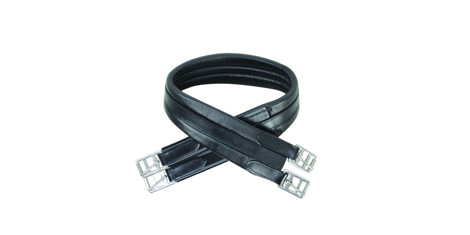 Hy Equestrian Leather Padded Atherstone Girth - Elasticated One End - Black