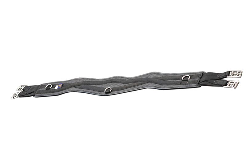 This anatomic shaped waffle girth combines perfect fit with comfort for your horse. The waffle material reduces chafing and the curved lines are more ergonomic for your horses shape. The girth features rings for ease of attaching martingales and training aids. Elastic at both ends to spread out pressure.