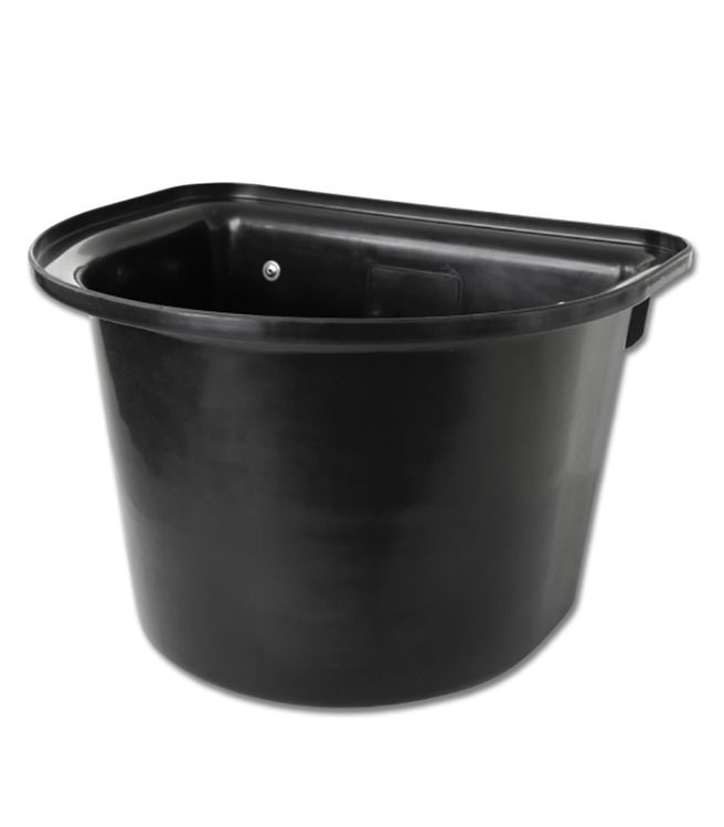 Hook over portable manger / feed bucket with two metal hooks to hang over a stable door or field gate. An ideal feeding bucket for horse's, it is made from heavy duty plastic with rounded edges. Easy to clean.