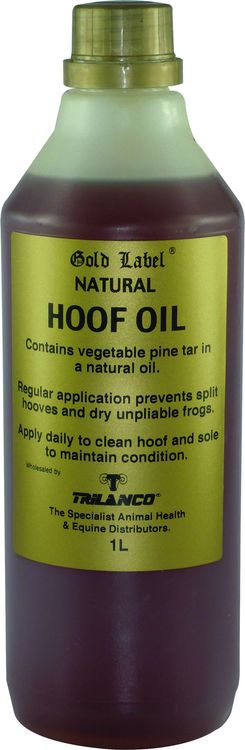 Gold Label Hoof Oil Natural is a premium, clear hoof dressing made with pure, natural ingredients to promote healthy, resilient hooves. Formulated with vegetable pine tar, it helps disinfect the hoof and frog while protecting against bacteria and fungi, leaving a clean, natural finish ideal for light-coloured hooves.