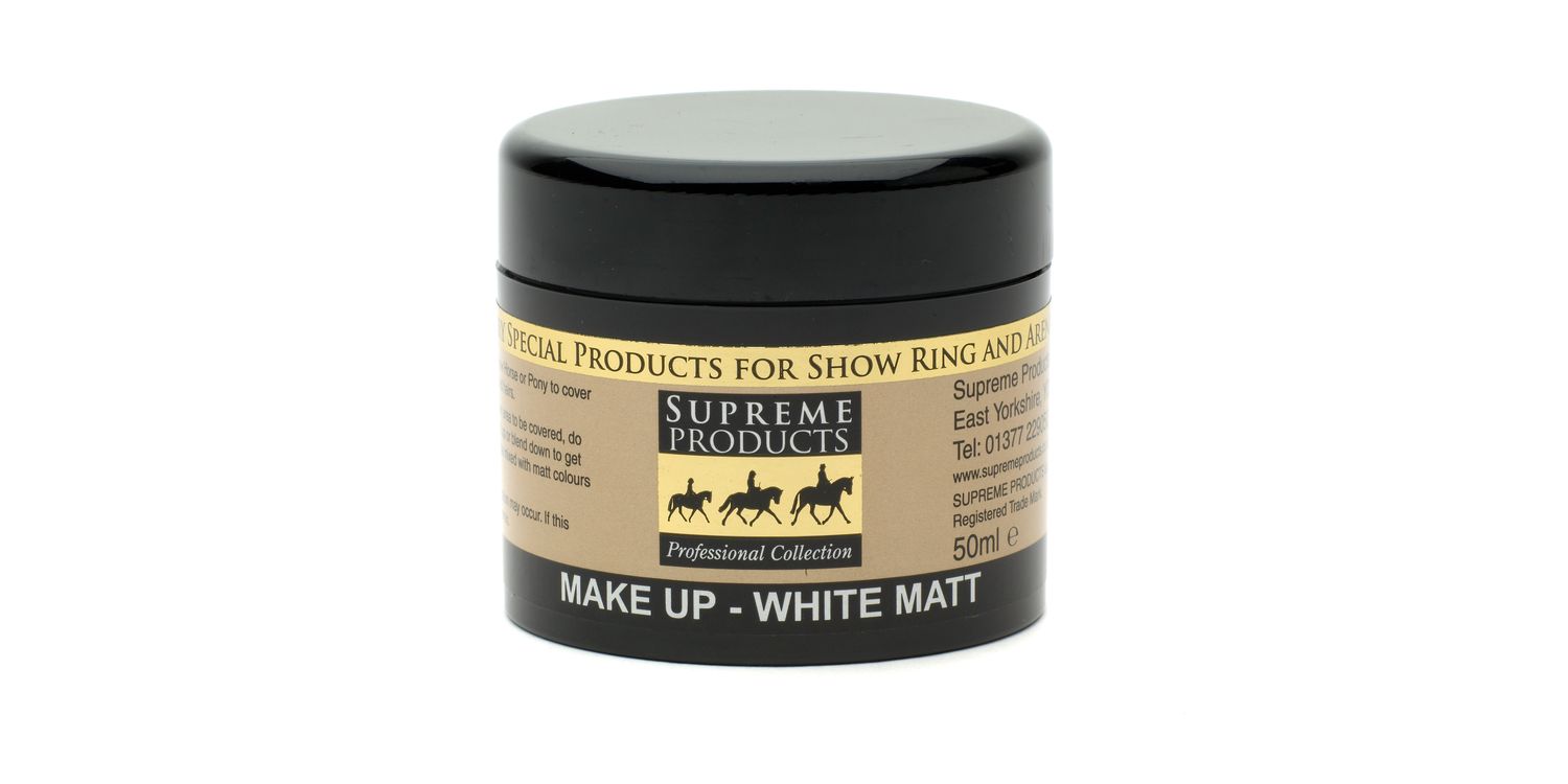 Use Supreme Products White Matt Make Up to cover over marks, scars and unwanted dark coat hairs. Use this product sparingly. This product does not contain dye. To get the desired colour / shade, it may be necessary to mix this with other colours in the range