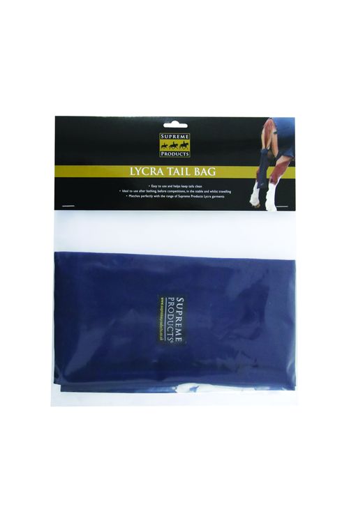 The Supreme Products Lycra Tail Bag is easy to use and helps keep tails clean. Ideal to use after bathing, before competitions, in the stable and whilst traveling. Simply plait your horses tail, place inside the bag and thread the ties through the plait at the base to secure in place. Matches perfectly with the other Supreme Products Lycra garments in the range.