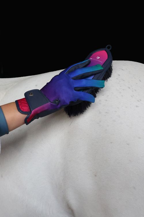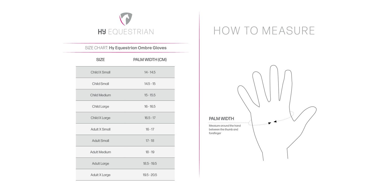 A stylish and practical glove, perfect for adding a splash of colour to your riding outfit! These pull on gloves feature a funky ombre back and navy palm with Amara grip. Featuring reinforced rein fingers to ensure durability, touch screen fingertips so you can still use your phone whilst keeping your hands warm and discrete grey Hy Equestrian logo.
