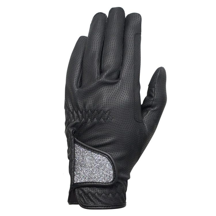 Ride in style with a touch of sparkle in these high performance gloves which are designed with advance grip Synthetic PU fabric. These smart gloves feature integrated touch screen tips on the thumb and forefinger and reinforced panels on rein fingers for added durability. The touch tape wrist fastening is partnered with an elastic cuff for a secure fit. Lightweight and breathable with a moisture wicking lining, these gloves are ideal for competition and match the Hy Ladies Roka Competition Jacket. A handy hanging loop is included on the inside.