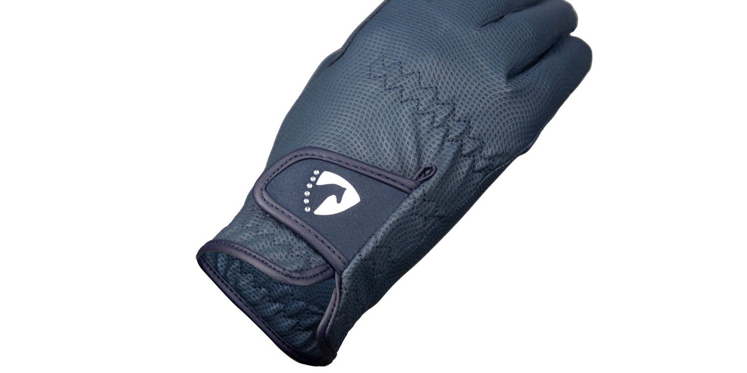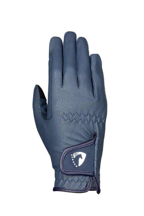 Made from a synthetic PU material, these smart gloves are incredibly grippy and comfortable - perfect for your time in the saddle. The reinforced rein fingers increase durability and longevity of the glove. The touch tape wrist strap is detailed with a shiny silver foil and diamante logo, and along with the elasticated cuff ensure a snug and secure fit. Finished with touchscreen fingertips to allow for use without removing.