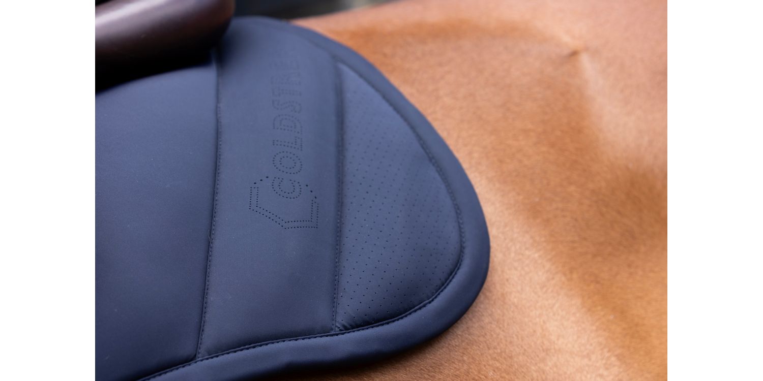 The Edrom Close Contact Saddle Pad by Coldstream is a smart addition to your horse's competition or everyday wardrobe.The outer is engineered using an innovative jersey and cotton hybrid fabric resulting in a soft and easy-care material that aids with comfort and breathability - perfect for the performance horse. With soft, lightweight padding, the saddle pad is lined with a moisture wicking and antibacterial waffle-texture cotton fabric to keep the horse cool and comfortable during exercise. Cut for an anatomical, close-contact fit that will suit any horse, the pad also features hexagonal matte silicone to assist with stability and grip under saddle. Elasticated D-ring attachments to keep the pad secure and durable girth loop and protector for longevity. The mesh insert to the rear of the pad and perforated Coldstream logo create the ideal sophisticated finishing touch and Coordinate with the matching fly veil perfectly.