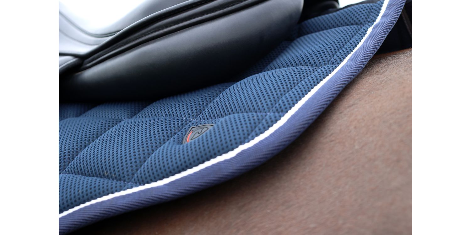 Where performance meets style. This innovative euro-cut saddle pad is made from the latest unique 3D mesh fabric, promoting maximum airflow, breathability and moisture wicking to keep your horse comfortable and cool when they need it most. The specialised design and perforations of the AirFleX 3D Mesh Saddle Pad allow for unrivalled air circulation, allowing temperature control regulation and fast drying action. The anatomical shaping and techno-flex material allows the saddle pad to contour perfectly to the horse for optimal fit under the saddle. Featuring elasticated D-ring fastenings, girth protection guard and girth strap, finished with tonal and white trim for a classic look.