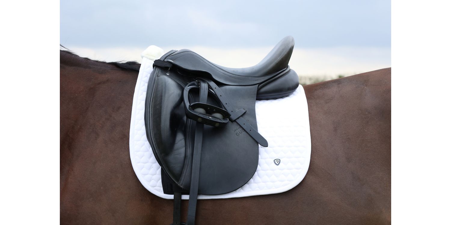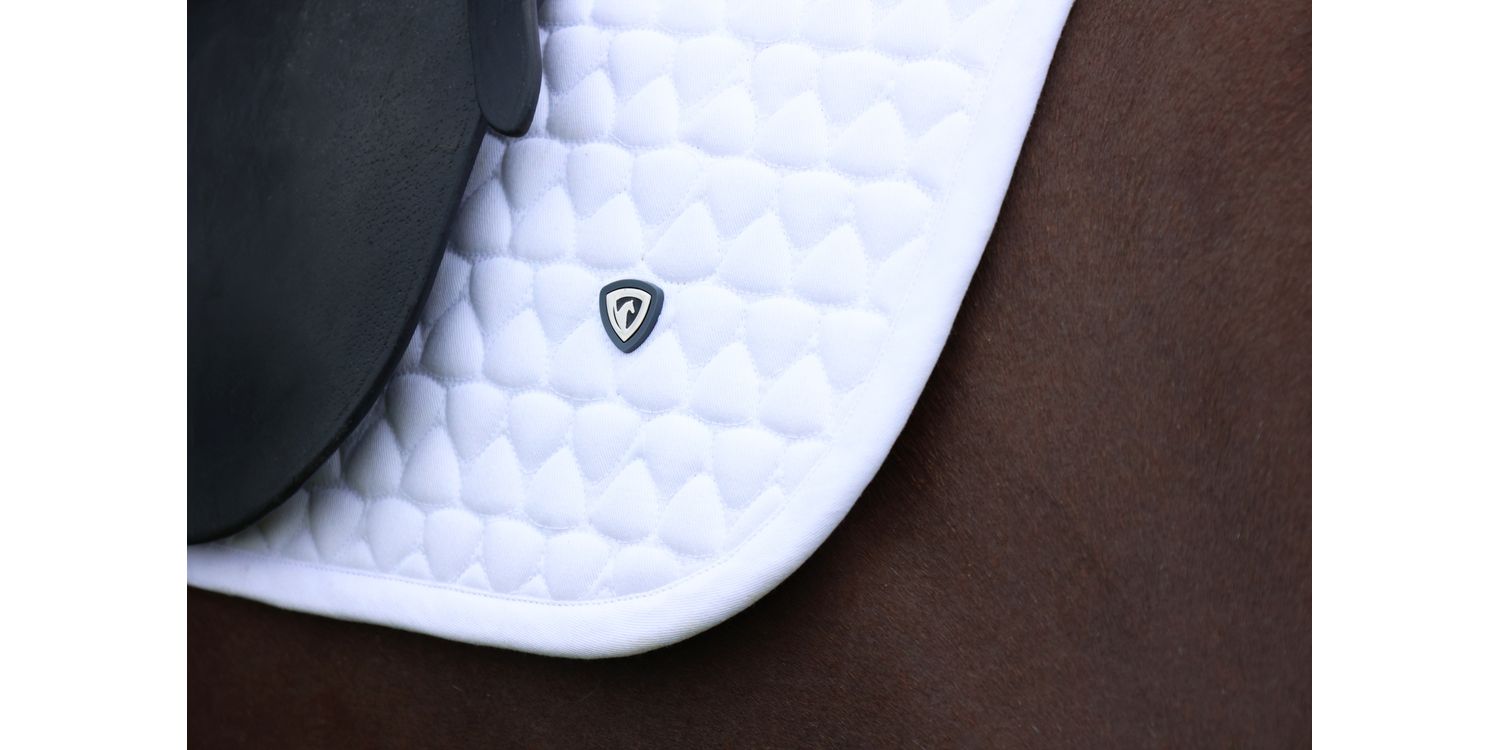 Designed for the active equestrian, this is the ultimate performance dressage saddle pad. With a high wither shape for good clearance, the Pro Reaction Saddle Pad features a mesh inner lining that will instantly wick sweat away from the horse to reduce the risk of rubbing. The luxurious faux fur not only looks good but helps to relieve pressure off the horses' shoulders and wither whilst the d-ring fastenings help keep the pad in place and secure. Finished with hardwearing girth guards to increase durability and a smart Hy Equestrian debossed rubber logo for a smart final touch. Part of the professional Pro Reaction collection.
