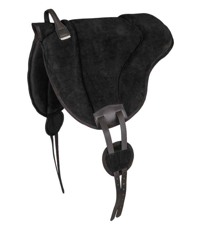 Anatomically shaped riding pad which provides a particularly good hold with It's suede surface and It's leather grip handle. The thick foam padding is stable under pressure and shock-absorbing whilst, at the same time, having an anti-slip effect. The soft cushioning and room for the withers makes the riding pad very comfortable for the horse's back.