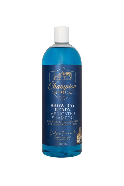 Show Day Ready Medicated Shampoo delivers a deep cleanse. Crafted with a conditioning formula, our medicated shampoo promotes healthy skin while enhancing shine. Suitable for all livestock and beneficial for soothing itchy, irritated and flaky coat types.