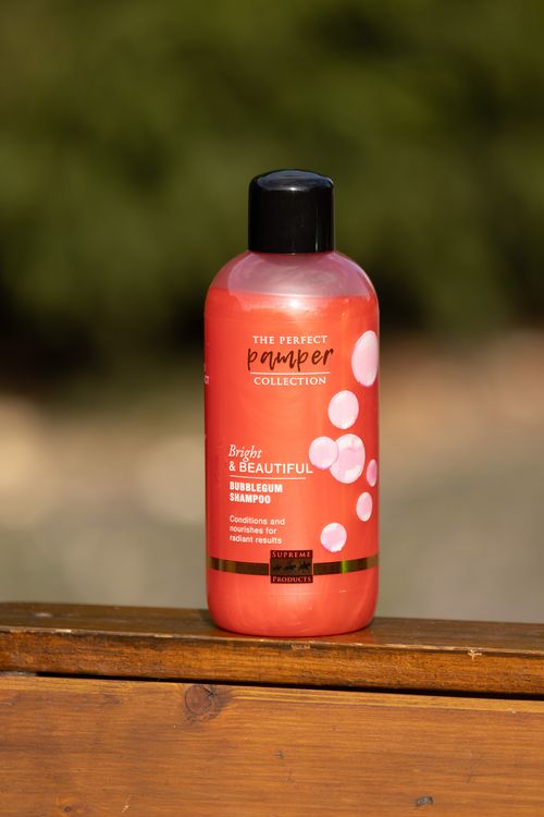 Your horse will be the star of the show after a spa day pampering session with the fabulously fragranced Supreme Products Bright & Beautiful Bubblegum Shampoo. An effective multipurpose shampoo that strengthens, repairs, protects, and hydrates, leaving your horse's hair and skin glossy and glowing. Enriched with provitamin B5 and wheat germ extract, it conditions and nourishes for radiant results and is particularly good for those with dry, itchy, scurfy skin, restoring their coat to a high-shine lustre for picture-perfect results.