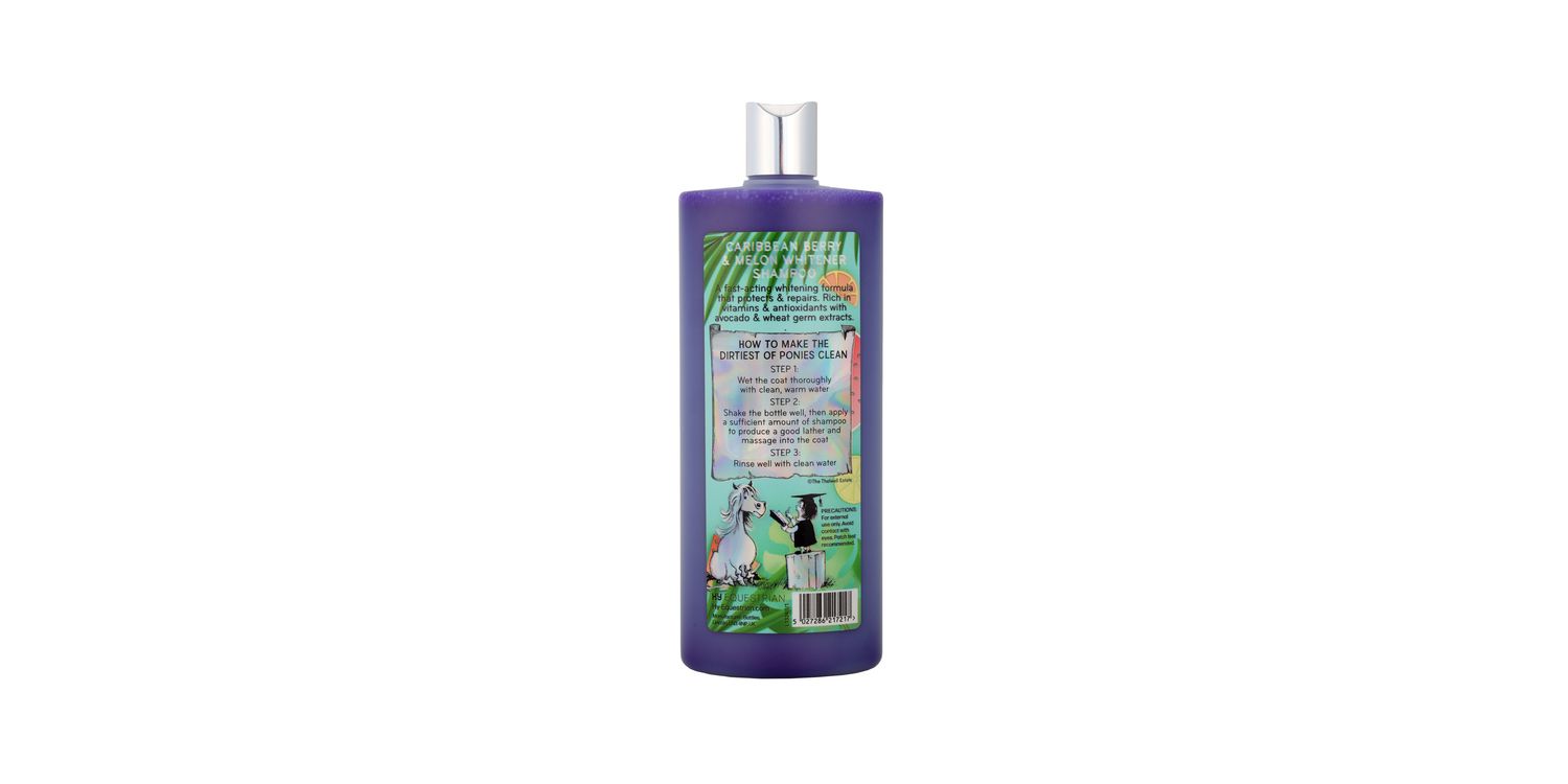 Squeeze the day! The tropical smelling Caribbean Berry and Melon Shine Bright Whitening Shampoo from the Thelwell Grooming Academy by Hy Equestrian is a fast-acting whitening formula that combats yellowing hairs and makes white areas dazzle! Rich in vitamins and antioxidants with avocado and wheat germ extracts to protect and repair the coat from damage. Perfect for those ponies that are magnets for mud and mess to create a gleaming finish! Patch test advised before use.