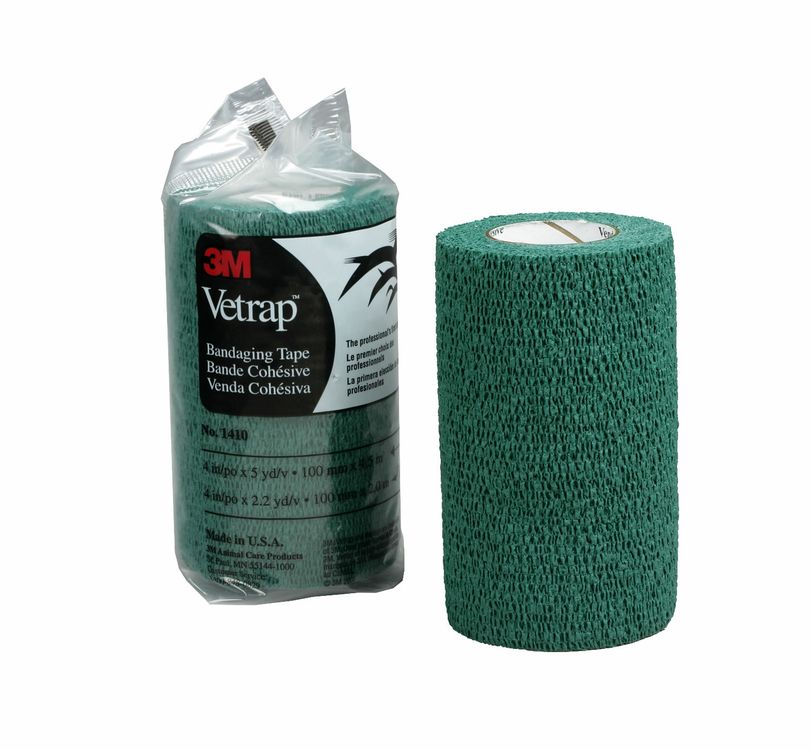 Cohesive wrap for equines and small animals, providing a great combination of softness, strength and conformability. Adheres to itself without adhesive so no additional fasteners are necessary. It conforms snugly around contours that are more difficult to bandage and accommodates movement without loosening. Allows skin to breathe through its cool, lightweight, porous material and absorbs virtually no moisture. Can be used as a hoof wrap, for rundown protection or to secure dressings, support sprains and fractures or as a tail wrap. A must-have for any first aid kit.