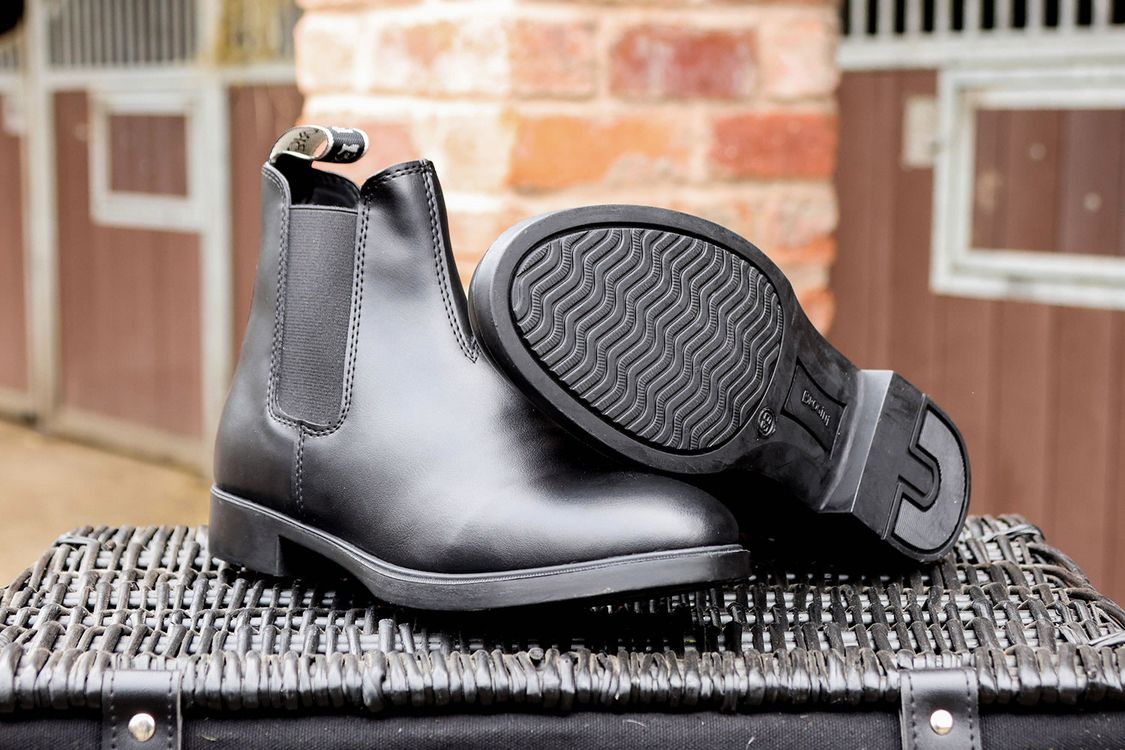 The perfect everyday boot, a classic Chelsea style jodhpur boot that is super easy to keep clean and maintain, meaning more time at the yard for riding and less worry about your boots! Made from easy-care vegan leather, easy to clean with only a cloth and soapy water, non-slip rubber sole, moisture wicking lining for all day comfort, slimline flattering foot shape.