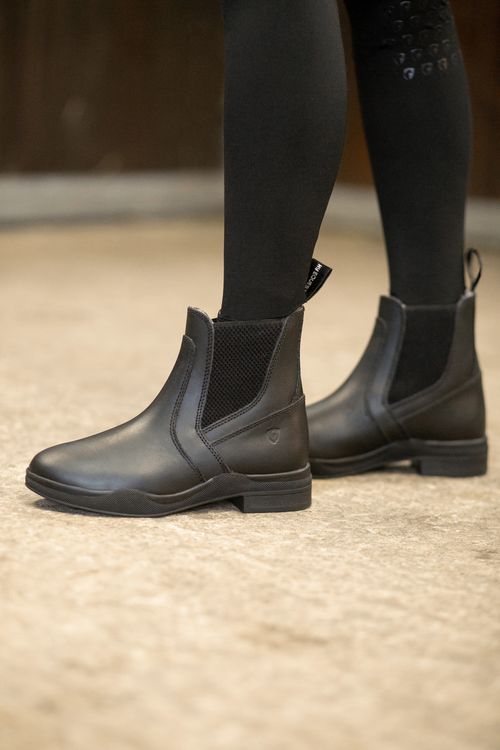 Made from water resistant wax leather and robust sole, these practical jodhpur boots are incredibly durable and practical. Featuring a fleece lining to keep your toes and feet toasty and warm, these super jodhpur boots are snug and stylish, ideal for everyday use or for best. A convenient pull on design with elasticated side gussets for added comfort.