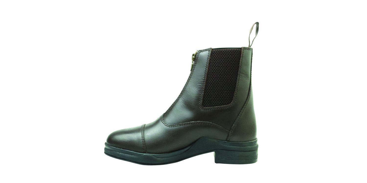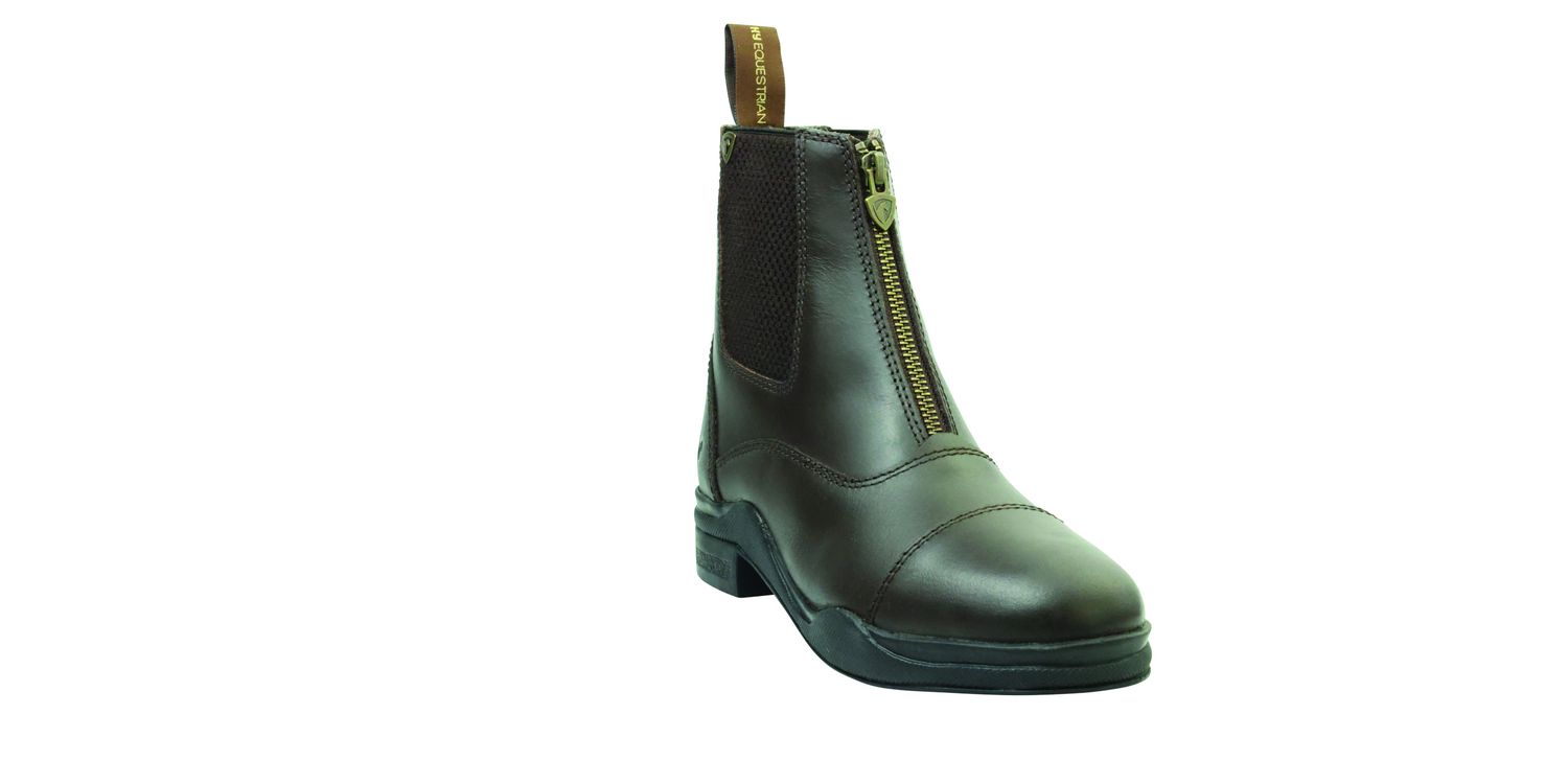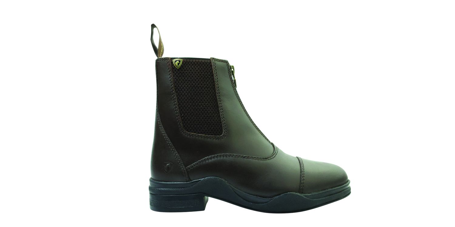 A zip fronted wax leather jodhpur boot. This boot boasts a leather upper made from calf leather to make it suppler and incredibly comfortable. TPR sole composition with synthetic lining. Elasticated side gussets. All boots come with easy to display packaging to help create an eye-catching retail display.