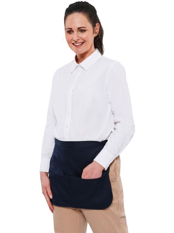 • A Waist Apron With Large Patch Pocket & Curved Hemline In A Hard Wearing Poly-Cotton Fabric.