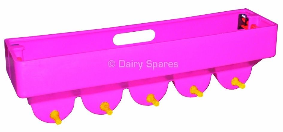 The Milk Bar 5 compartment feeder is perfect for small groups of lambs or kids and comes fitted with 5 Milk Bar colostrum teats ready to go.