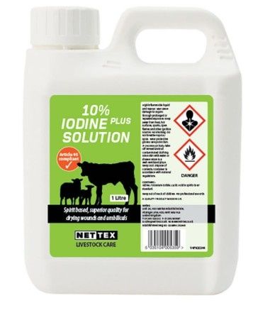 An effective slow-release formula, Nettex Iodine BP 10% Solution is specially designed for application to the skin and navels of newborn lambs and calves. Containing 10% iodine BP, this ready-to-use topical antiseptic helps cleanse and disinfect by reducing surface bacteria and contamination.
