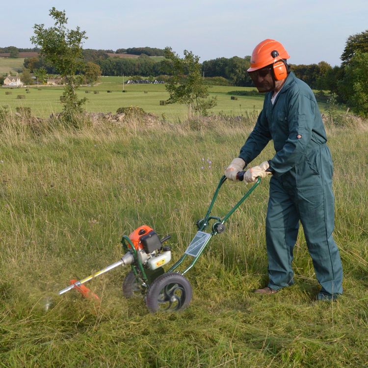 Powerful air-cooled 43cc (1.25 kW/1.7 hp) two stroke engine wheeled brushcutter and strimmer is supplied with our heavy duty PowerStrim 6 mulching head. The new Rufcut features our Flexi-Cut system which allows easy strimming right up to walls and edges with a simple adjustment. And it’s flexible handle to allows working on a slope and comfort of operator.