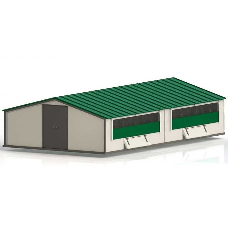 The mobile corral is a product conceived for an easy and quick assembly, that the own farmer can mount it in his farm. Made with antiseptic materials of great durability and little need of maintenance. The most important materials for its construction are: galvanized metal structure, sandwich panel of the highest quality of 30 mm in the roof and 40 mm in the enclosures and frontis, provided with doors and windows for access and ventilation.