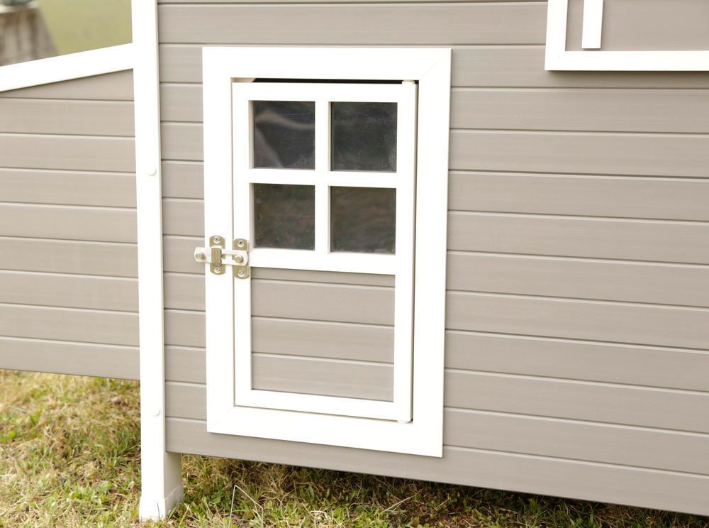 With two separate doors, two laying nests and two perches, this poultry house is designed for both practicality and comfort. Extended feet improve airflow beneath the house, while a sliding window allows adjustable circulation. Its waterproof and UV-resistant build ensures long-lasting performance in all conditions.