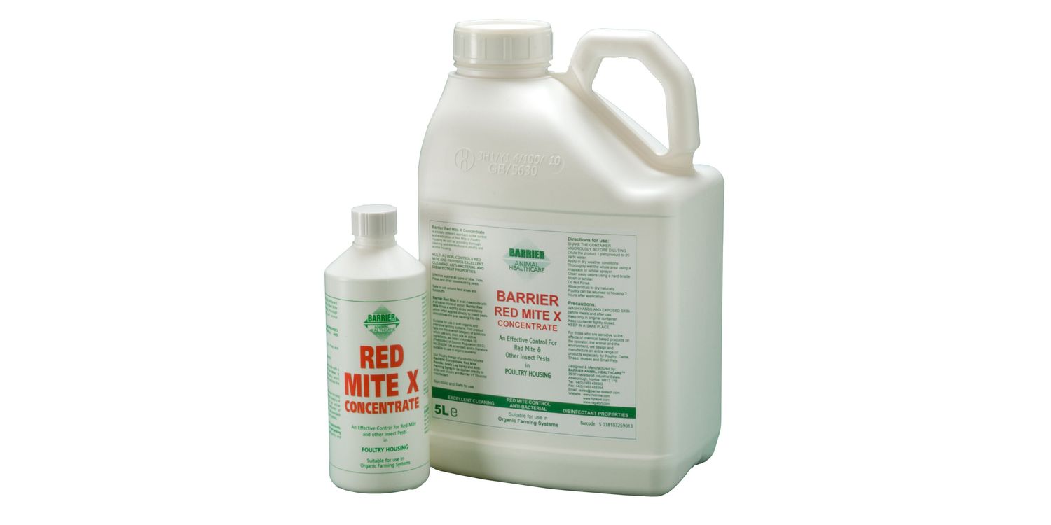 Barrier Red Mite X Concentrate is a powerful yet non-toxic solution designed to combat red mite infestations in poultry and animal housing. With a high dilution rate of 1:20, it offers cost-effective and long-lasting protection, making it ideal for regular maintenance in feed storage and nesting areas.