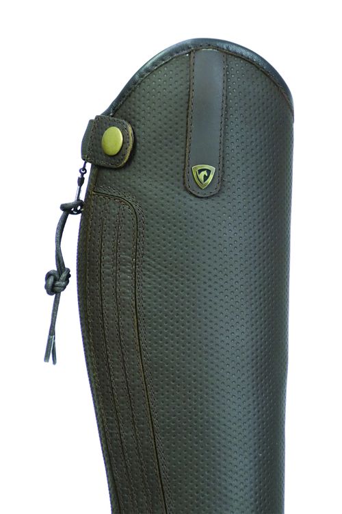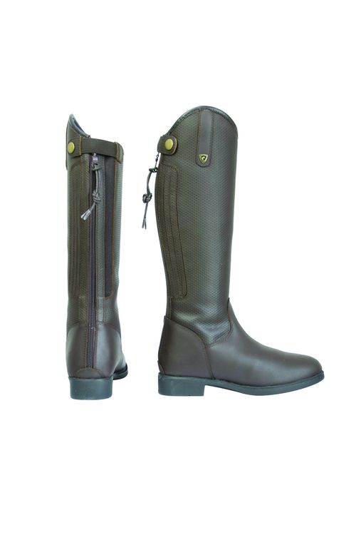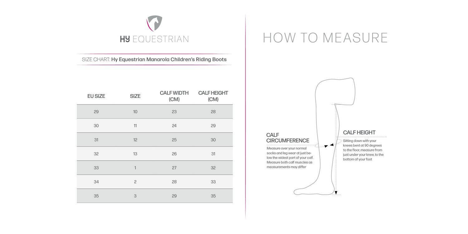 These smart new riding boots are practical, stylish and durable, what more could you want from a pair of children’s riding boots! The leg is made from a perforated synthetic leather, to allow for a comfortable and breathable fit allowing a fresh feeling all day long! Fastened with a durable zip, which is complemented with an elasticated back panel for an easy fit. Press stud fastening at the top and brass Hy Equestrian emblem to finish the look.