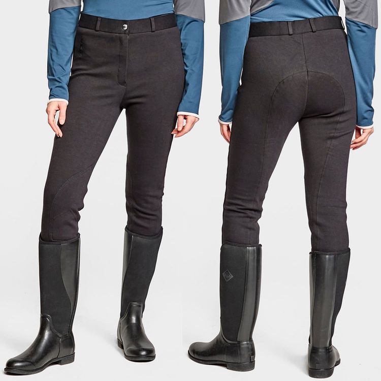 Fashionable and comfortable ladies jodhpurs, making them a must-have for your riding wardrobe. Crafted with a 95% cotton/5% spandex blend, they allow for a wide range of movement, and are easy to pull on. This makes them the perfect pick for when you're in and out of the saddle. Featuring a faux zipper details and branded waistband with belt loops, they also offer a small inner pocket and reinforced knee patches for added durability.