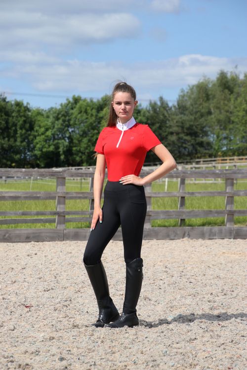This vibrant show shirt comes in red and white and is made from a soft, breathable material for optimum comfort when the active rider needs it the most. Featuring mesh panels to the collar and back for extra airflow and style! With a 3/4 zip and contrasting piping on the red design for the special finish. The Hy Equestrian emblem features on the chest.