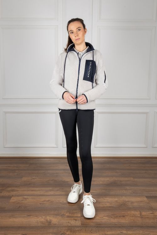 Designed using a technical sports fabric, crafted from recycled plastic bottles. Featuring an integrated quad-stretch mesh to allow for temperature control and consistent airflow, ideal for intense work outs. The compression style, curved waistband ensures a smooth, flattering look whilst offering unrivalled comfort at all times. The riding tights feature two secure phone pockets for storage, along with smart, contrasting coloured detailing. A tonal, silicone full seat system provides security in the saddle, detailed with the unmistakable Coldstream logos. Finished with subtle raised silicone Coldstream branding to coordinate with the Darnick Polo Shirt for a sophisticated training look.