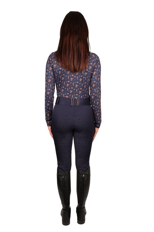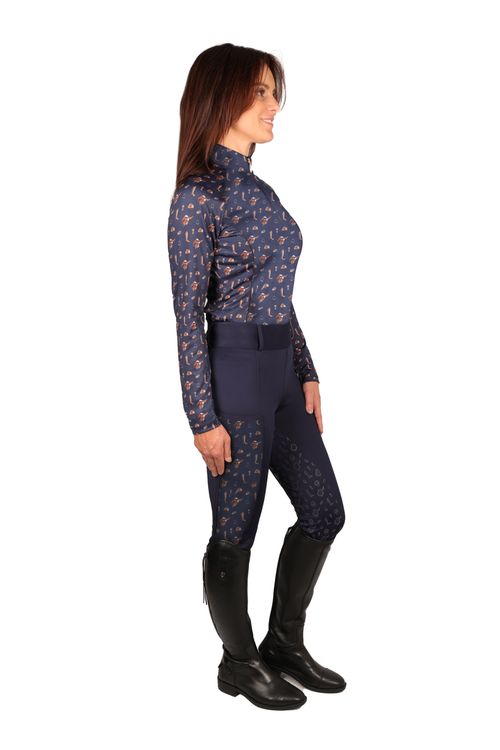 Designed using a flexible material to allow unrestricted movement, the Elevate Country Riding Tights are a must have for the active rider. These smart tights are made from a lightweight, breathable material to make every ride as comfortable as can be! The country print panels elongate the leg for a flattering style and classic look. With a handy phone pocket and feature a full silicone seat in tonal country print for added grip in the saddle.