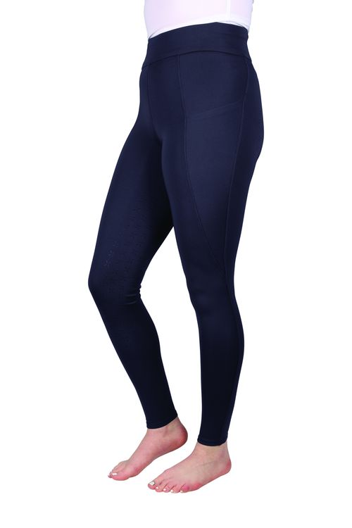 Made with polyester and spandex, these riding tights are the ultimate comfortable attire for days in and out the saddle. The four way stretch material and supportive waistband enhances fit and offers a flattering shape. Full silicone seat in the stunning Hy Equestrian emblem increase grip and stability when riding. The tights are finished with practical phone pockets, silicone logo to the waistband and no bulk ankles for a comfortable fit under long boots or socks. These are perfect for everyday at the yard, competitions, training or pony club!