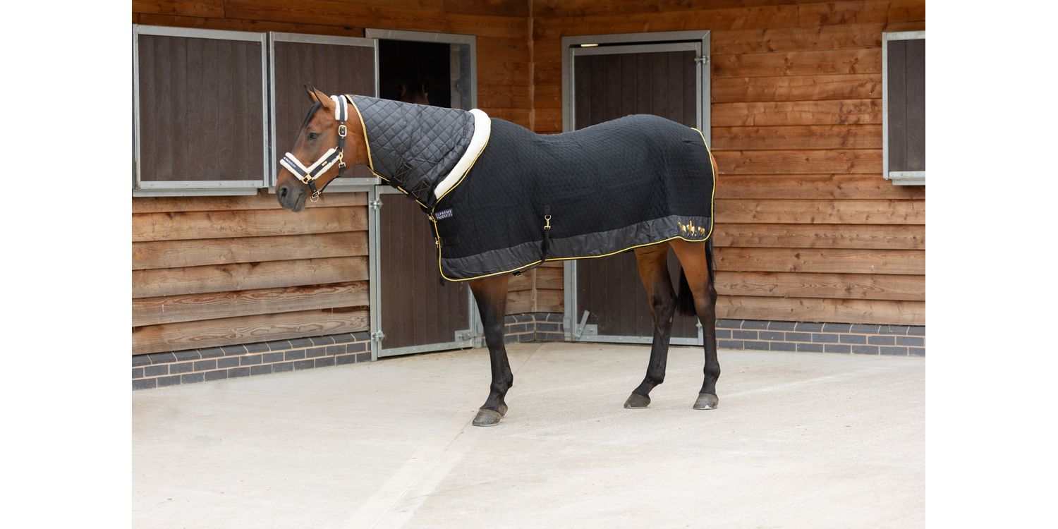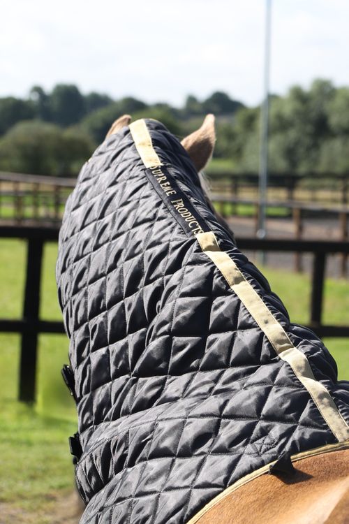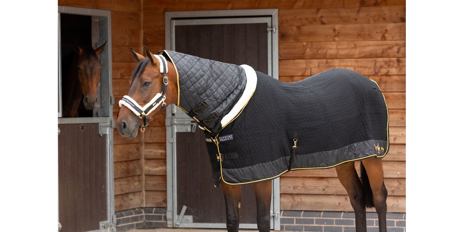 This super easy to pop on and off 200g quilted hood, thanks to the touch tape fastenings, is an equine wardrobe essential. Perfect to use at shows when waiting for classes in the collecting ring or at home in the colder months over a Lycra Hood. It will protect plaits, help lay the coat, and keep your horse clean and cosy. It can be worn with or without a surcingle and is finished with signature black and gold Supreme branding.