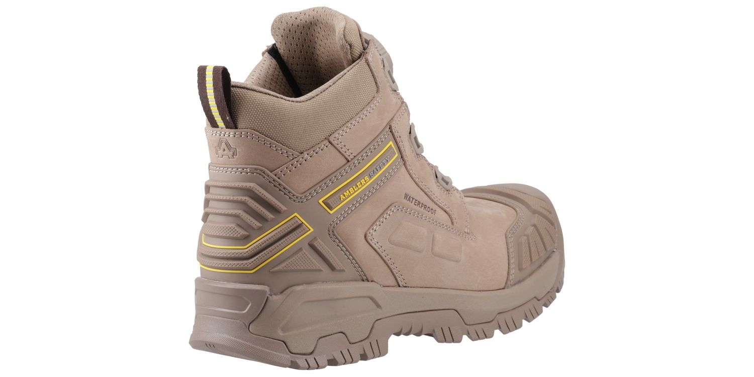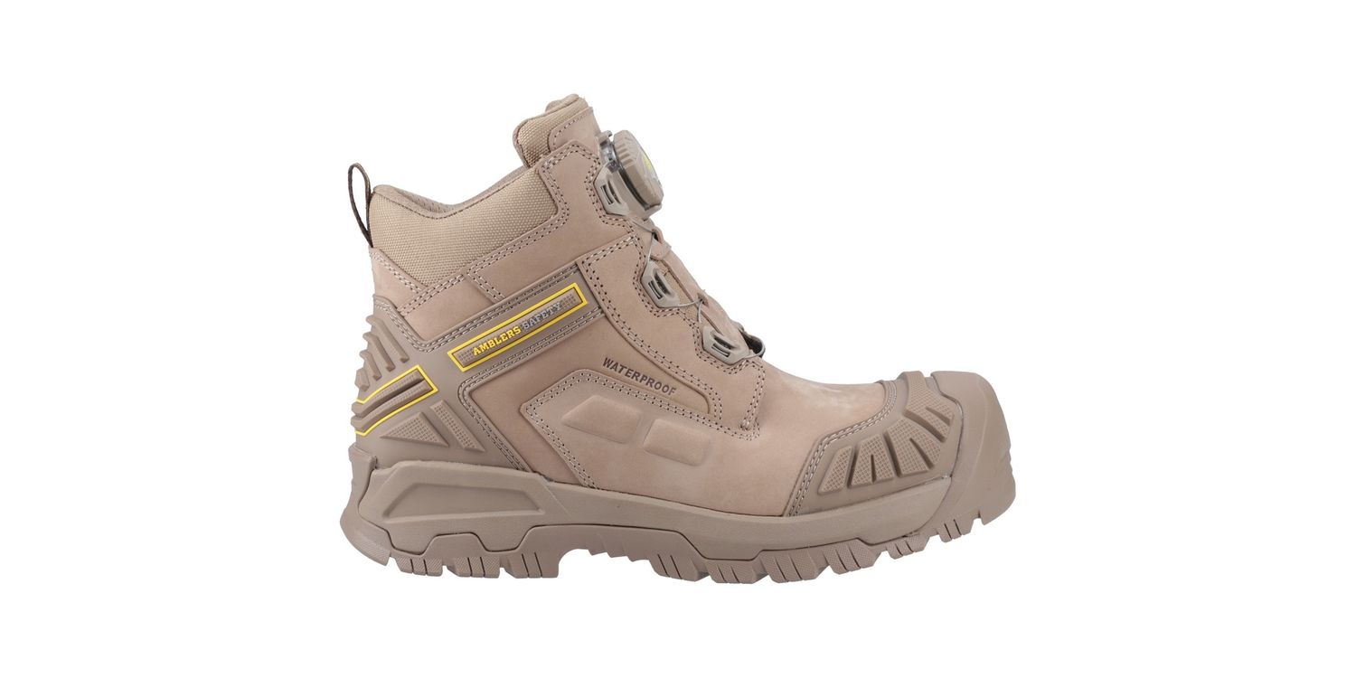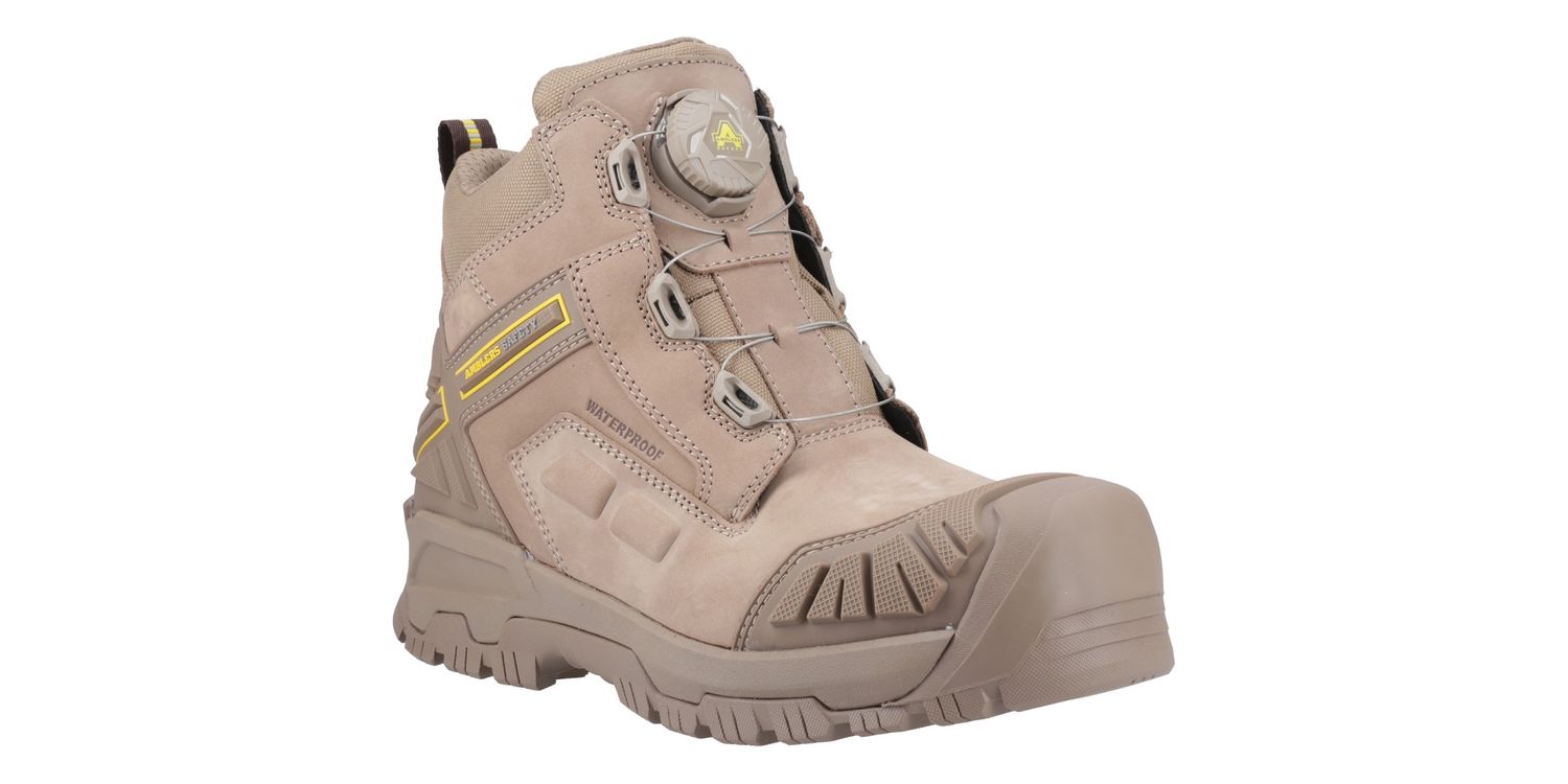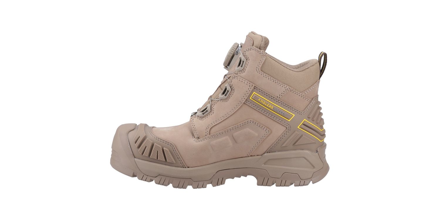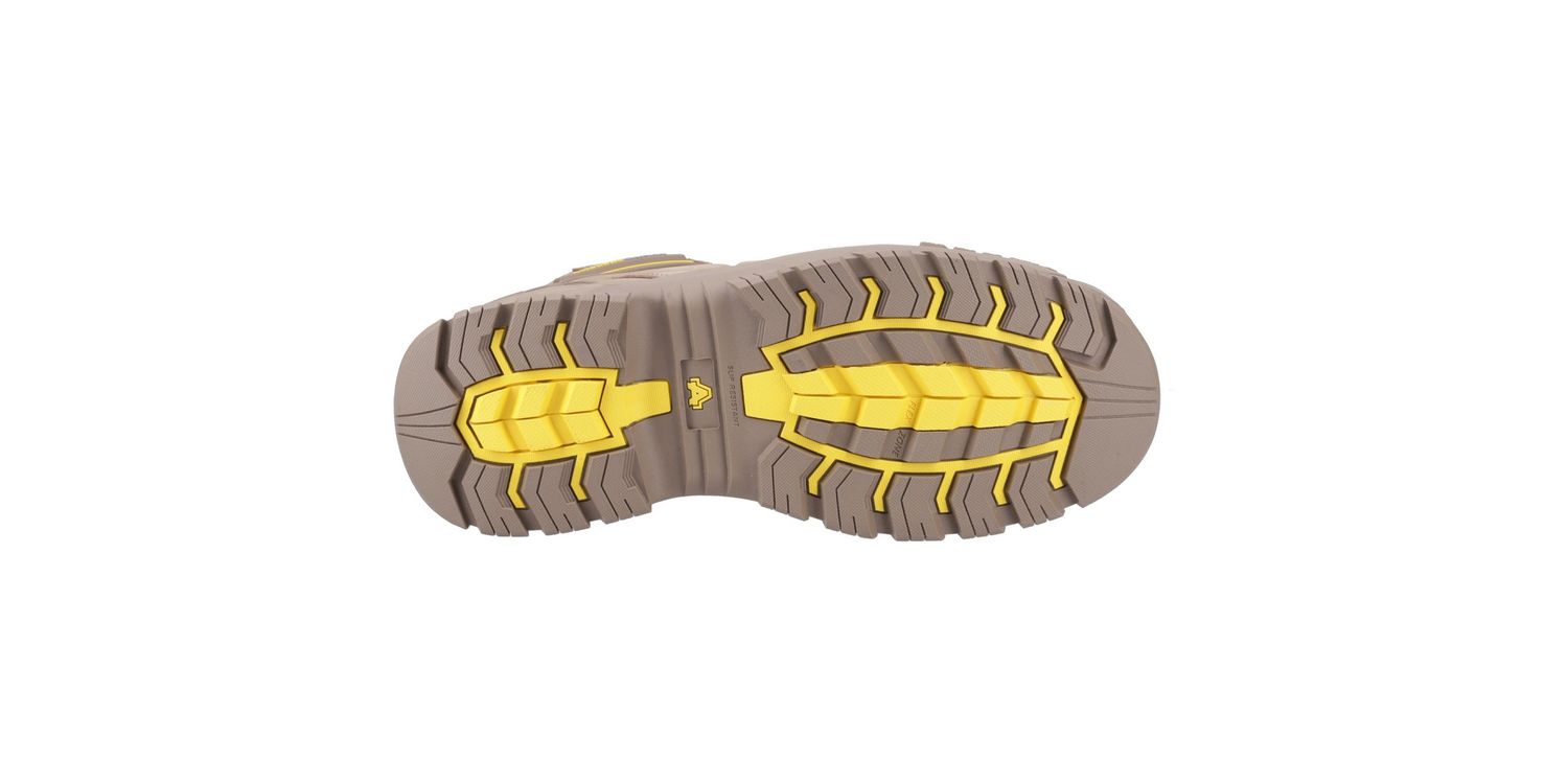 The 966C Safety Boot from Amblers Safety features a fibre glass toe cap with impact resistance of up to 200 joules and a protective non-metal midsole that gives a minimum of 1100 newtons penetration resistance.