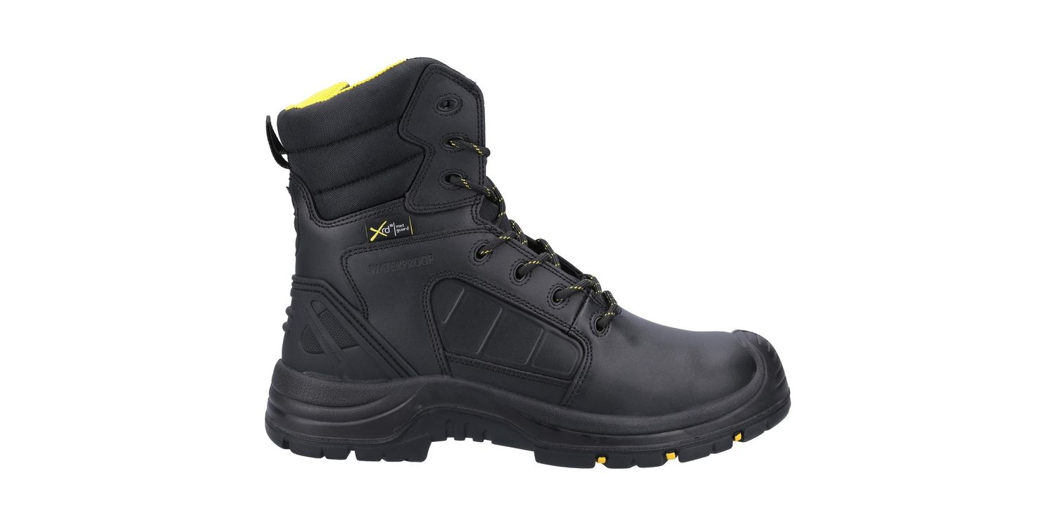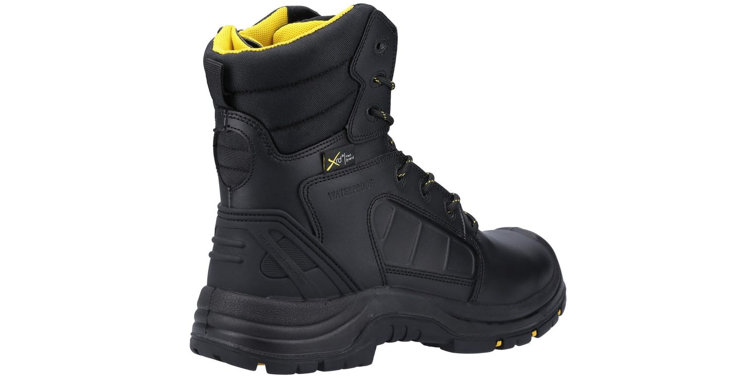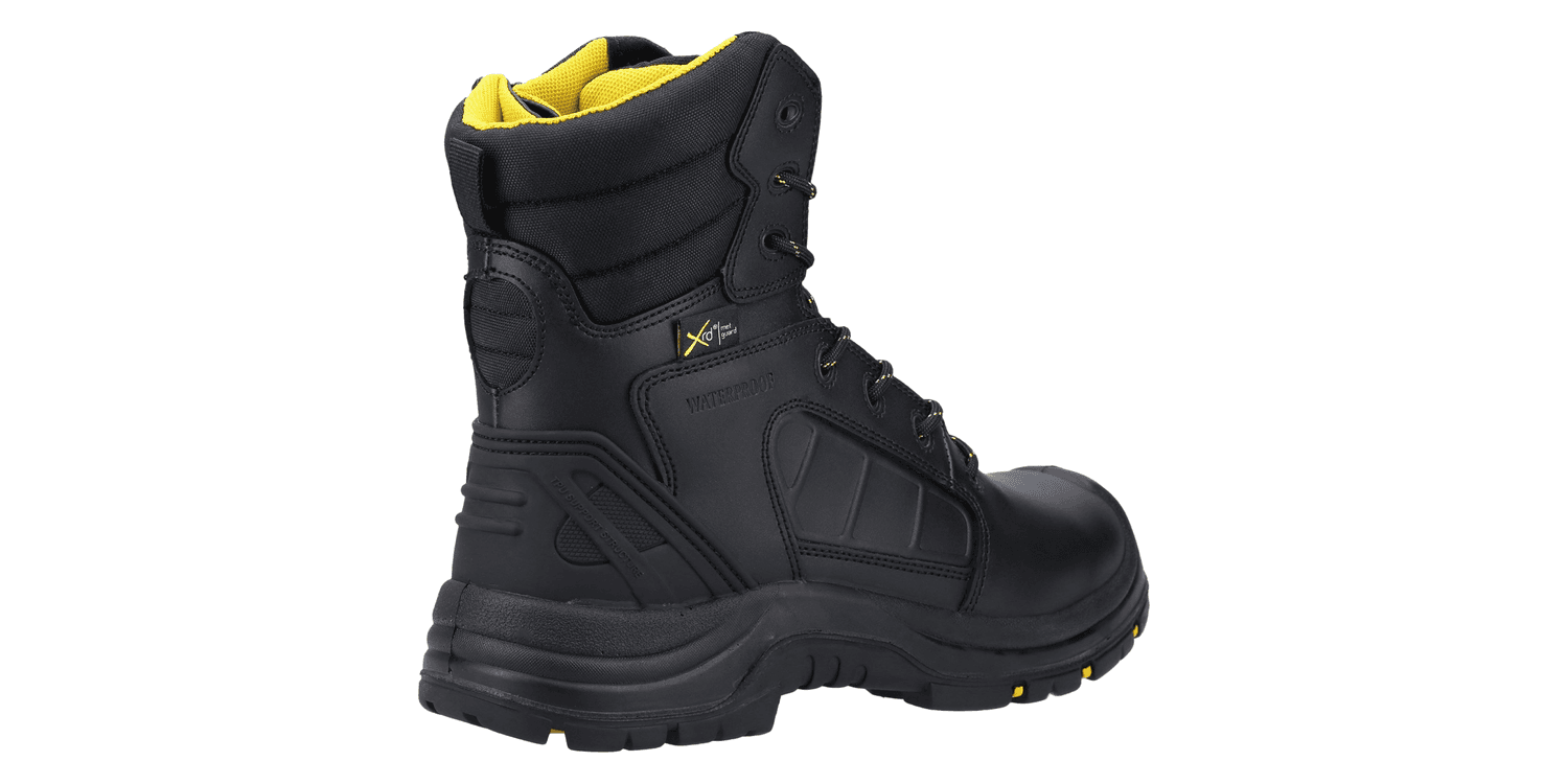 Mens robust metal-free waterproof hi-leg metatarsal safety boot with quick access YKK metal free side zip. TPU Heel Support for Extra Durability and Injected PU Midsole. Rubber Outsole Heat Resistant to 300 Degrees.